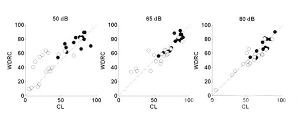 <span style="font-size:16px;"> 重度聽力損失是500Hz、1000Hz、2000Hz和4000Hz平均聽閾在61dB HL和80dB HL之間的聽力損失。重度聽損患者更趨向于:</span></p><p><span style="font-size:16px;"> ?。?)聽力損失時間較久;</span></p><p><span style="font-size:16px;"> ?。?)有助聽器佩戴史;</span></p><p><span style="font-size:16px;"> ?。?)言語分辨率較低;</span></p><p><span style="font-size:16px;"> (4)噪音環境中交流困難。</span></p><p><span style="font-size:16px;"> 1、重度聽力損失的特點</span></p><p><span style="font-size:16px;"> 60dB HL是單純外毛細胞損傷和內外毛細胞共同損傷的分界點,內毛細胞受損預示著重度聽力損失,這類患者的頻率選擇能力降低,在相關頻率范圍內難以分辨兩種聲音。這是噪聲環境下交流困難的主要原因。</span></p><p><span style="font-size:16px;"> 簡單來說,頻率選擇能力越低,自身降噪能力越差,噪聲下識別信號的能力也就越差。</span></p><center><span style="font-size:16px;"><img alt="" src="/upfiles/20181016012659501.png" width="440" height="250" /></span></center><p></p><p><span style="font-size:16px;"> 2、選擇合適的放大策略</span></p><p><span style="font-size:16px;"> 反饋抑制:這項技術在傳統方法的基礎上有更好的減少嘯叫的效果。</span></p><p><span style="font-size:16px;"> 指向性麥克風:有指向性功能的助聽器可以明顯提高信噪比(SNR)?,F在自適應指向性麥克風廣泛地應用于大功率耳背機中。</span></p><p><span style="font-size:16px;"> 對于噪聲下言語交流困難的重度聽力損失患者,選配帶有指向性麥克風的助聽器效果顯著。</span></p><p><span style="font-size:16px;"> 聽力學家對重度聽損人士的指向性麥克風做過獲益度測試,發現平均言語識別能力提升了14%。</span></p><p><span style="font-size:16px;"> 重度聽損患者使用指向性功能時必須保證一定低頻增益,否則他們會感覺聲音不夠洪亮。</span></p><center><span style="font-size:16px;"><img alt="" src="/upfiles/201810160127134771.png" width="440" height="250" /></span></center><p></p><p><span style="font-size:16px;"> 寬動態范圍壓縮線路(WDRC):</span></p><p><span style="font-size:16px;"> 如下圖,白點是重度聽力損失患者的輔音識別得分,黑點是輕度至中度聽損患者的輔音識別得分;每位受試者佩戴四通道的耳背機,驗配采用NAL公式;測試言語聲強度分別為50dB SPL、65dB SPL和80dB SPL;比較WDRC和線性輸出壓縮限制(CL)兩種線路的得分。</span></p><center><span style="font-size:16px;"><img alt="" src="/upfiles/201810160127198326.png" width="600" height="240" /></span></center><p></p><p><span style="font-size:16px;"> 等分位于對角線附近代表兩種處理方式效果相似,得分位于對角線上方表示WDRC線路效果更好,而下方則表示CL線路效果更好。</span></p><p><span style="font-size:16px;"> 對重度聽損患者來說,輸入輕聲和中等聲時WDRC線路比CL線路效果更好;輸入響聲時兩種線路的區別并不大。所以使用WDRC線路可以獲得比CL線路更高的言語識別率。</span></p><p><span style="font-size:16px;"> 壓縮速度:壓縮越深可聽度越高,因為患者可以聽到更寬的聲音響度范圍。</span></p><p><span style="font-size:16px;"> 快反應壓縮(起效和釋放時間很短)可以降低元音(響度較大)增益并提高輔音(響度較小)增益,從而提高可聽度。</span></p><p><span style="font-size:16px;"> 所以理論上來講,對于重度聽損人士,使用多通道助聽器、低壓縮拐點、高壓縮比、音節壓縮,可以最大程度提高驗配效果。</span></p><center><span style="font-size:16px;"><img alt="" src="/upfiles/201810160127304305.png" width="600" height="500" /></span></center><p></p><p><span style="font-size:16px;"> 但壓縮越深就意味著有聲音失真越大,音節壓縮丟失了重要言語信息,導致輔音分辨不清。若要保留這些信息,則需要慢反應壓縮(起效和釋放時間較長)。</span></p><p><span style="font-size:16px;"> 最好的情況是在提高可聽度的同時還保證信號不失真,但目前很難實現,找到二者的平衡點是最佳的選配方案。</span></p><center><span style="font-size:16px;"><img alt="" src="/upfiles/20181016012736476.png" width="440" height="250" /></span></center><p></p><p><span style="font-size:16px;"> 上圖為一組重度聽力損失患者選配快速和慢速WDRC線路的言語識別率對比。</span></p><p><span style="font-size:16px;"> 在輸入聲級為50和65 dB SPL時,快反應壓縮線路的受試者得分明顯比慢反應壓縮線路的受試者差;在80 dB SPL輸入聲級下則并無明顯差別。</span></p><p><span style="font-size:16px;"> 對輕度和中度聽力損失患者來說,無論何種輸入聲級,兩種壓縮方式的得分都沒有明顯差別(并未在圖中顯示)。</span></p><p><span style="font-size:16px;"> 對極重度聽力損失患者來說,可聽度比其他任何信息都重要,快反應壓縮線路效果比慢反應壓縮線路更好。</span></p><p><span style="font-size:16px;"> 綜上所述,在使用多通道WDRC線路助聽器前提下,一定程度的可聽度是必須的,在這個基礎上要追求最低的失真(最低的壓縮比以及最慢的壓縮),才能達到最好的驗配效果。</span></p><p><span style="font-size:16px;"> 我們經常會遇到重度聽力損失患者,應該找到適合他們的驗配策略并提供心理和生理咨詢。</span></p><p><span style="font-size:16px;"> 助聽器選配的效果受到外周及中樞聽覺系統的能力限制,重度感音神經性聽力損失患者很少能在噪音環境中聽清。</span></p><p><span style="font-size:16px;"> 但是,通過仔細的驗配和回訪調試,我們依然可以取得很好的效果。重度聽力損失患者體現了聽覺系統的復雜性,提醒我