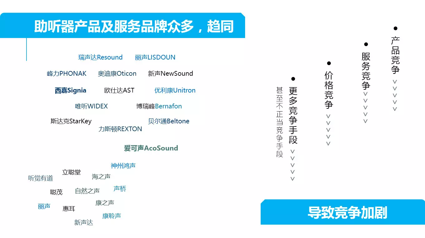 <span style="font-size:16px;"> 2018 年 11 月 16 日,由北京聽力協會主辦、聽力服務行業(yè)委員會協辦的“2018新聲代聽力行業(yè)峰會”在蘇州圓滿閉幕。來自全國各地的助聽器驗配師、門店經營者、國內外制造商和經銷商的管理者共 200 多人參加了大會。本次大會歷時 3 天,會議包含了 1 個小型成員會、1 場晚宴、1 場重要發(fā)布會、4 場主題論壇、1 場案例分析、2 場圓桌論壇、3 場企業(yè)走訪,共20位主題演講嘉賓和10位圓桌論壇嘉賓做了精彩分享。</span></p><p><span style="font-size:16px;"><img src="/upfiles/201812180855261075.jpg" alt="" /><br /></span></p><span style="font-size:16px;"> 李鵬,愛可聲品牌助聽器創(chuàng)始人,杭州愛聽科技有限公司董事長;浙江大學生物醫(yī)學工程專業(yè)博士;浙江大學e-works創(chuàng)業(yè)實驗室創(chuàng)業(yè)導師;浙江大學十佳創(chuàng)業(yè)之星;浙江大學校友會理事;全國助聽器人工耳蝸專業(yè)委員會會員;中國儀器儀表學會理事。<br /> 11月16日上午,在2018新聲代聽力行業(yè)峰會“大市場大競合”的主題論壇中,來自愛可聲品牌助聽器創(chuàng)始人李鵬先生做了 “國產助聽器品牌如何差異化發(fā)展”的主題發(fā)言。<br /></span><p><span style="font-size:16px;"> 目前中國聽力行業(yè),正是產品品牌、服務品牌百花齊放的時代。中國擁有超過10家產品品牌。對于經銷商來講,面對產品品牌的選擇異常多。在當下,產品、服務越來越趨同,這也意味著市場競爭將非常激烈。</span></p><p><span style="font-size:16px;"><img src="/upfiles/201812180856004630.jpg" alt="" /><br /></span></p><span style="font-size:16px;"> 有競爭,就會有利有弊。<br /> 利:產品競爭,可以促使廠商不斷創(chuàng)新技術、推出更高性能的產品。服務品牌競爭,使服務商越來越專業(yè),更好的服務于客戶。<br /> 弊:惡意的價格競爭,導致終端客戶享受的綜合服務可能不是最優(yōu)。<br /> 面對如此市場,如何破局?李先生強調主要在“差異化”。<br /> 李先生先引用了孫子兵法里的一句話:“凡戰(zhàn)者,以正合,以奇勝;故善出奇者,無窮如天地,不竭如江海”。想要破局,就要尋找可發(fā)展的空間。如電商領域,當大家覺得天貓、京東已經壟斷了中國電商行業(yè),很難再有新的獨角獸公司時,拼多多用三年的時間做到銷售額上千億。這正說明了市場發(fā)展的無限潛力,即使是在電商這樣競爭異常激烈的行業(yè)。<br /></span><p><span style="font-size:16px;"> 接著李先生用中國手機品牌的崛起舉例說明,中國手機品牌是如何找到自己的差異化并獲得成功。</span></p><p><span style="font-size:16px;"><img src="/upfiles/20181218085700170.jpg" alt="" /><br /></span></p><span style="font-size:16px;"> 那助聽器行業(yè)如何差異化呢?李先生分享了以下四點。<br /> 1.助聽器品牌切入的差異化<br /> 分析市場情況,尋找市場空白點(痛點,盲點,關鍵點);分析自身所長,明確自身目標,確定品牌定位,如:麗聲的引以為傲的定制式助聽器。<br /> 2.產品差異性<br /> 功能、性能、定價。如:<a href="http://m.fangdaochuangsha.com/productsInfo-100596.html" target="_blank"><span style="color:#3333ff;"><strong>峰力助聽器</strong></span></a>的美人魚,主推防水功能;新聲的Bee,主推通用耳道機;愛可聲的紅寶石,主推隱形助聽器等等。<br /> 3.市場差異化<br /> 將中心放在國內還是國外,側重線上還是線下的開拓,開荒三四線還是深耕一二線? 不同的助聽器品牌根據自身企業(yè)特點有著各自不同的選擇。<br /> 4.商業(yè)模式差異化、組織形式差異化<br /> 李先生分享了愛可聲助聽器公司的一些感悟及對行業(yè)的未來的展望。<br /> 愛可聲感悟:守正出奇與雙S增長曲線雙劍合并。當公司在華麗增長時,公司的增長也許已經處于增長曲線的末端,再繼續(xù)競爭下去,曲線可能保持不變或者下滑。這時就需要出奇開辟新的增長曲線,尋找新的差異化。當曲線在華麗增長時,重心應在出奇上,開拓增長點。當開拓新增點,尋找到差異化后,重心應在守正上,在尋找到差異化后應不斷完善細節(jié)。出奇是引子,守正才是快速增長的方式。<br /> 李先生最后對行業(yè)未來做了展望。從大趨勢上說,機會依舊非常多。<br /> 老齡化社會的到來——新一代老年人消費意識的崛起;<br /> 三四線消費能力的崛起;<br /> 技術進步帶來新商業(yè)模式的機會與挑戰(zhàn)——例如遠程驗配會如何改變服務模式;<br /> 如何抓住行業(yè)整合的機會以及面對由此帶來的實力更強的競爭對手;<br /> 如何面對跨行業(yè)的不對稱競爭——BOSE帶來的挑戰(zhàn)。<br /><br /><br /> 相關推薦閱讀:<a href="http://m.fangdaochuangsha.com/newsDetail-102054.html" target="_blank"><span style="color:#3333ff;"><strong>GN Hearing與Google聯合宣布,即將實現美國貝爾通助聽器與Android設備全面直連</strong></span></a><br /><br /> 聽覺有道助聽器價格:http://m.fangdaochuangsha.com/products.html<br /><br /><br /> 發(fā)布于2018年12月18日 星期二<br /> 上午9:01分</span>" />